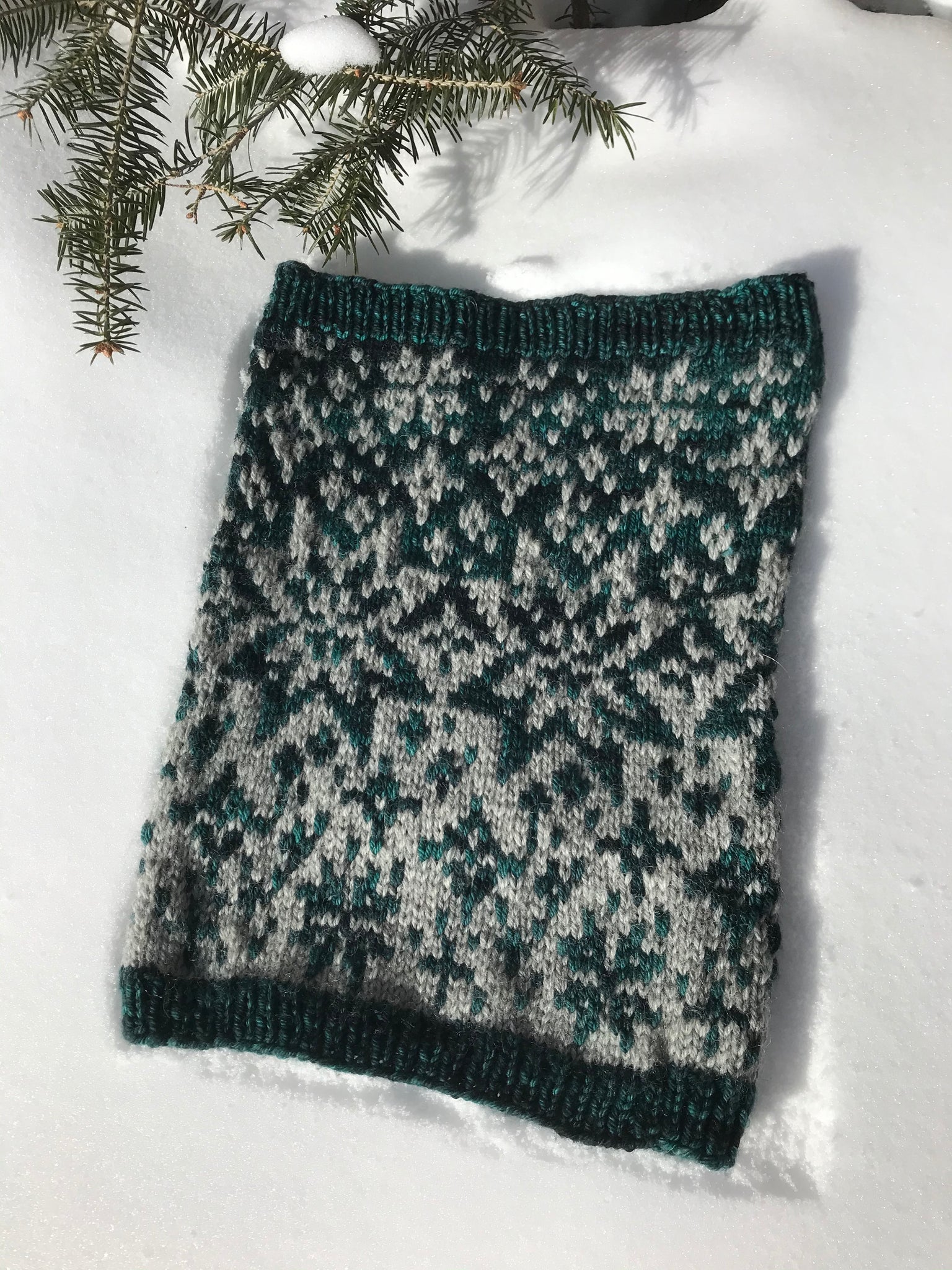 Not being a designer herself, per se, she reached out to a favorite Swiss designer, Marianne Niemack; AKA Runningyarn, with the idea. A knitting collaboration was born, and the result is the beautiful “Dark Sky Neckwarmer”; a perfect piece to wear when stargazing on a chilly evening in the BWCA.